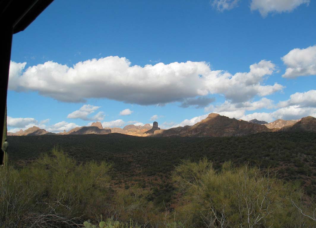 The hills in the distance.