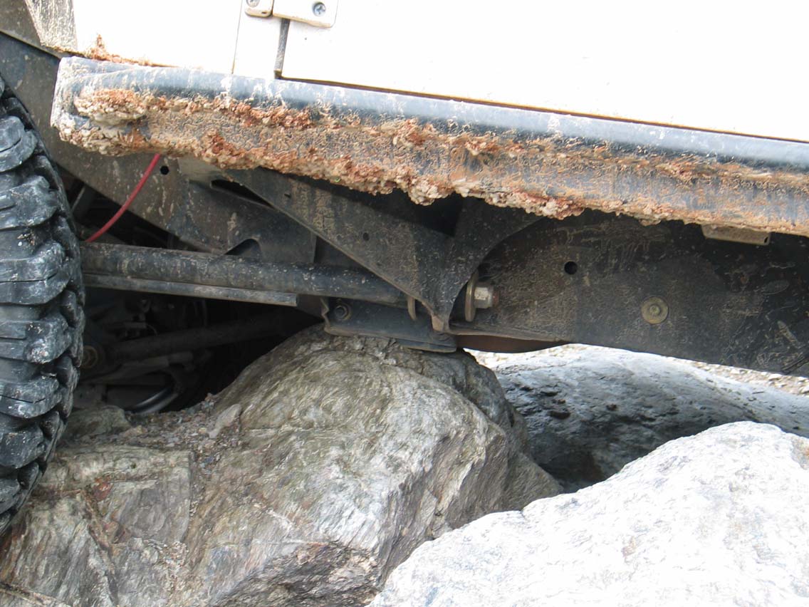 Leo's frame scrapes the top of a rock.