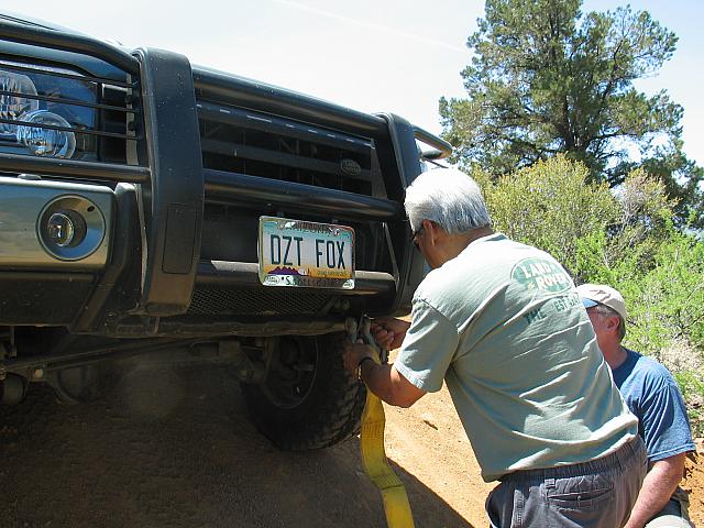 Leo gets ready to get a vehicle unstuck.